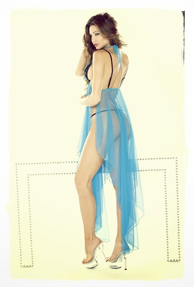Mesh Halter Babydoll With Lace Underlay And G-String Blue